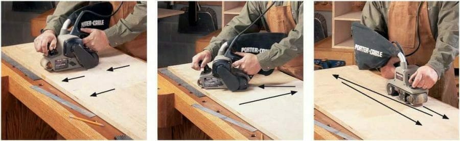 3. Уровень по всей поверхности. Установите новую ленту и продолжайте шлифовать. На этот раз вы двигайтесь вперед, назад и слегка в бок по всей длине поверхности панели.