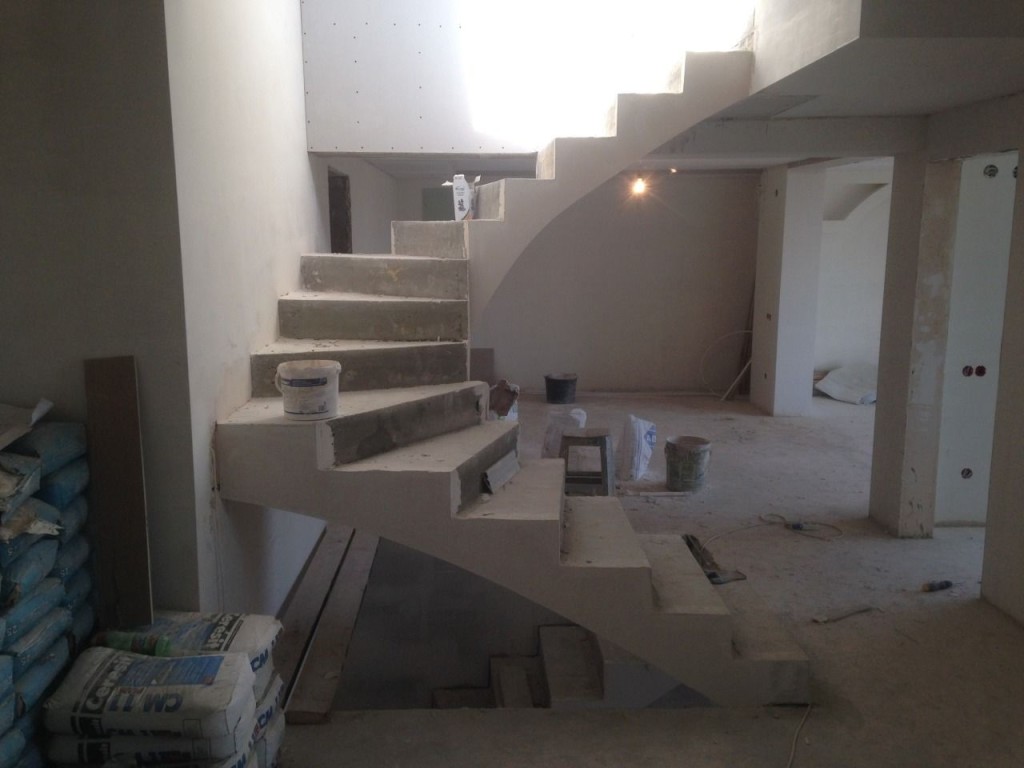 Довольно таки не простая конструкция забежной лестницы из бетона.