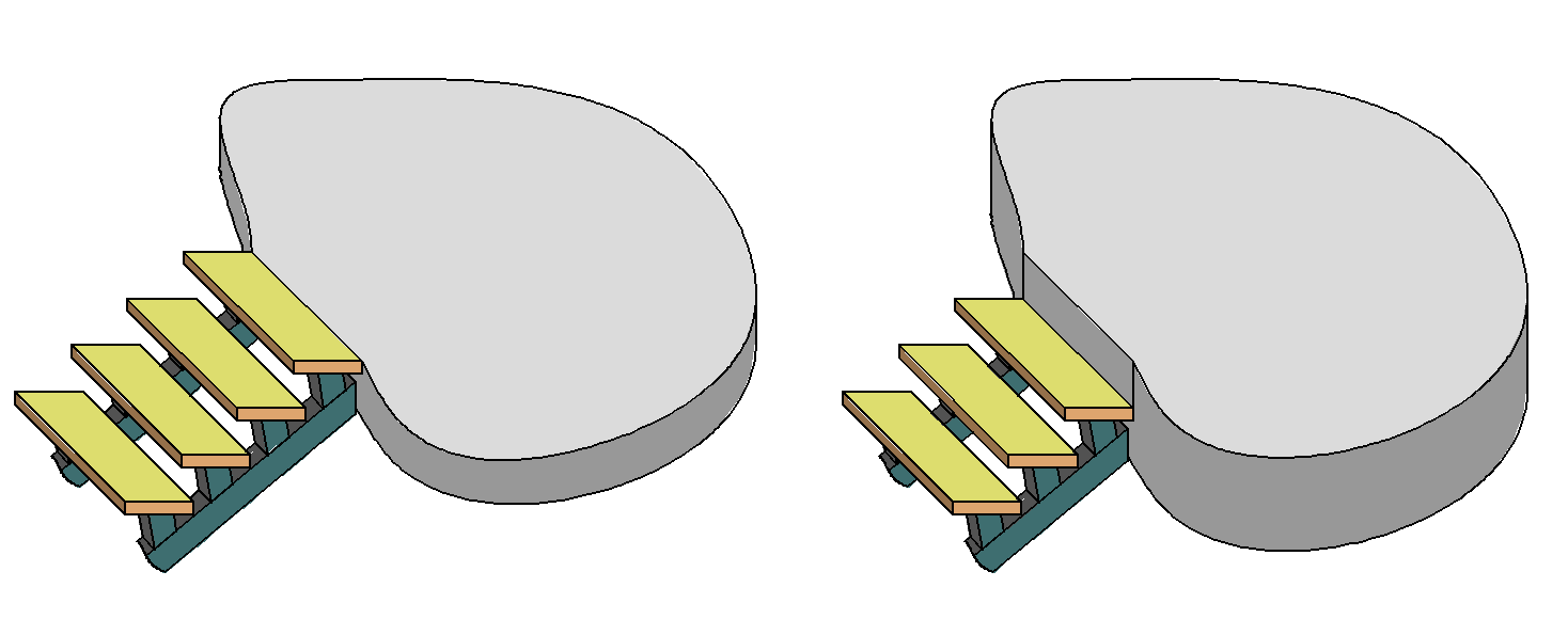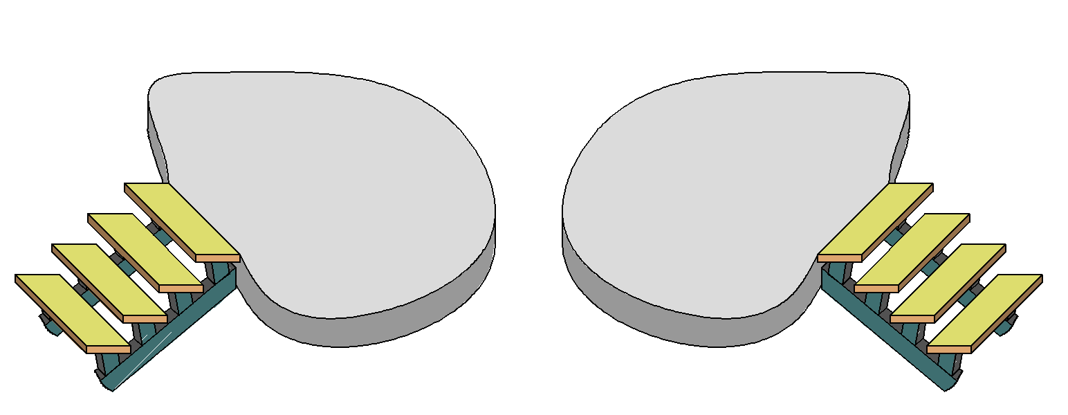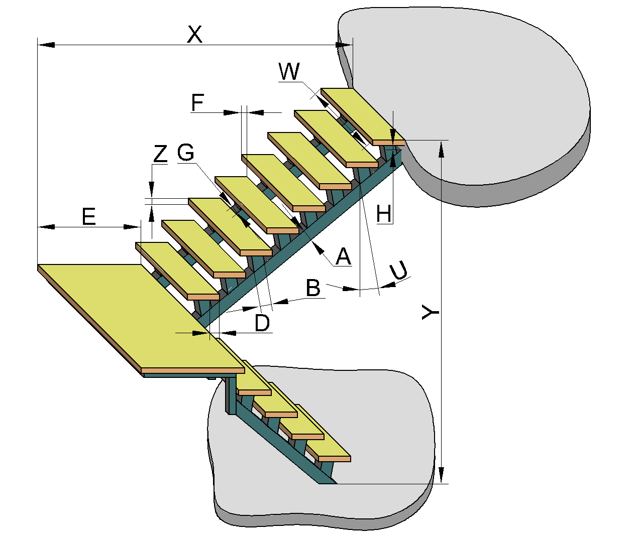 а. Максимальная ширина — ступени размещены на двух маршах, габарит по ширине регулируется изменением количества ступеней на соответствующей паре тетив;