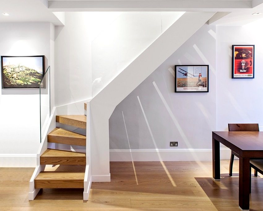 Помните, что отделка лестницы может осуществляться из любого материала, поэтому достаточно легко включить такую конструкцию в стиль вашего интерьера. Лучше всего консольная лестница с поворотом на 90 градусов будет смотреться в следующих стилях.