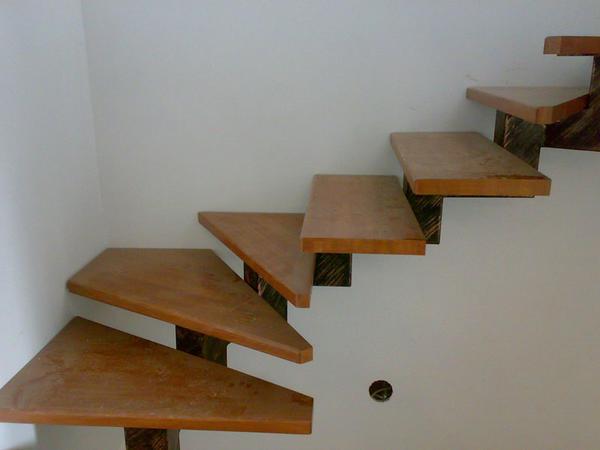 Ступени лестницы могут располагаться либо в треугольных вырезах, сделанных непосредственно в косоурах, либо на дополнительных элементах — кобылках — деревянных клиньях, имеющих форму прямоугольного треугольника и крепящихся к балке с помощью шкантов. Чтобы повысить надежность этого крепления, в доске иногда делают вырез небольшого размера, а в кобылке – соответствующий выступ.