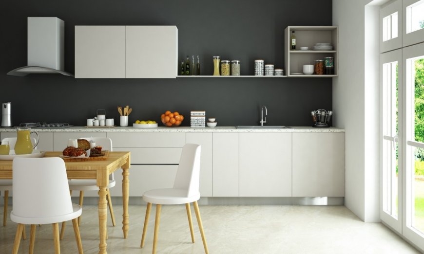 Покраска стен в белый или любой другой светлый цвет также заставит помещение казаться больше. Сочетание белоснежных стен с серыми шкафами будет смотреться просто великолепно. Если белый для вас слишком яркий, можно смешать его с любимым оттенком, чтобы добиться светлого цветного тона.