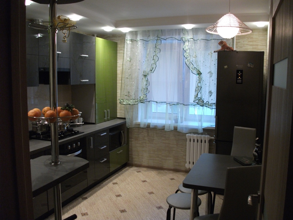 Из недостатков можно отметить то, что если ваша кухня будет длиннее 3-4 м, то это скажется на удобстве пользования. В этом случае некомфортно перемещаться по многу раз между печкой, мойкой и холодильником, поставленным в один ряд.