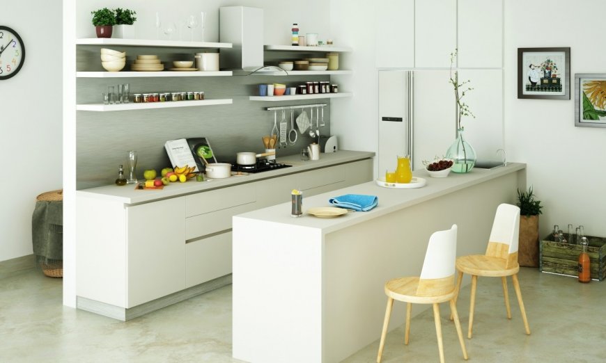 Минимализм – фаворит среди современного дизайна. Это идеальный выбор для небольшой кухни. Ровные линии, светлые цвета, несложные с конструктивной точки зрения светильники – все это помогает создать иллюзию дополнительного пространства.