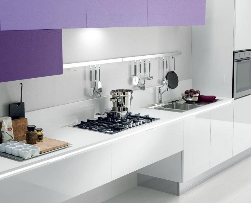 - практичность (при правильном расположении всех необходимых предметов бытовой техники, а также шкафов и полочек на одной линии все нужное будет у хозяйки под рукой; это значительно ускорит работу и сделает ее качественней);