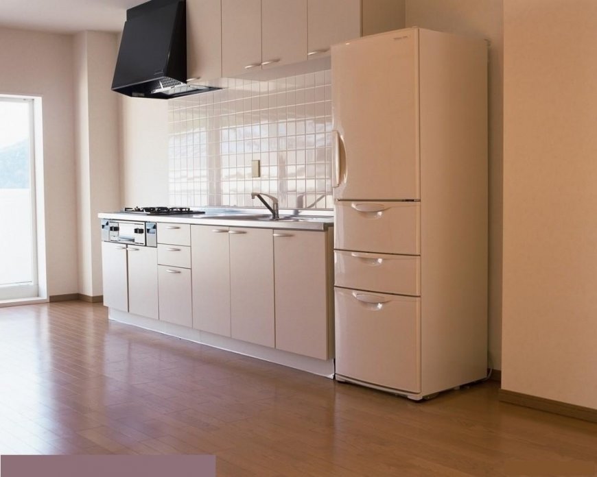 - Маленькие прямые кухни с холодильником не позволяют вместить рабочую поверхность необходимой длины.