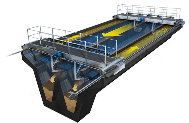 - песколовки, сооружения механической очистки в которых задерживаются крупные тяжелые примеси за счет оседания при изменении скорости движения сточных вод;