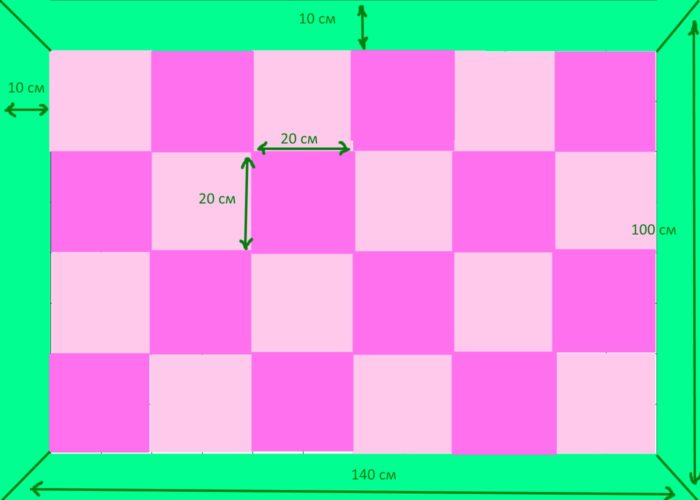 Размер, в данном случае легче выбрать 100 на 140 см, потому что так нам будет легче кроить и вести расчеты.