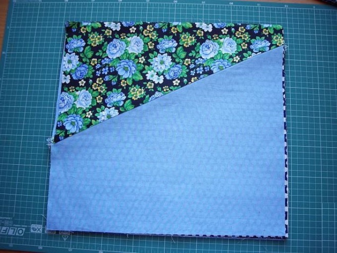 Один из отрезанных фрагментов снова перекладывается под низ, после чего, как в первый раз, повторяется сшивание и проутюжка.