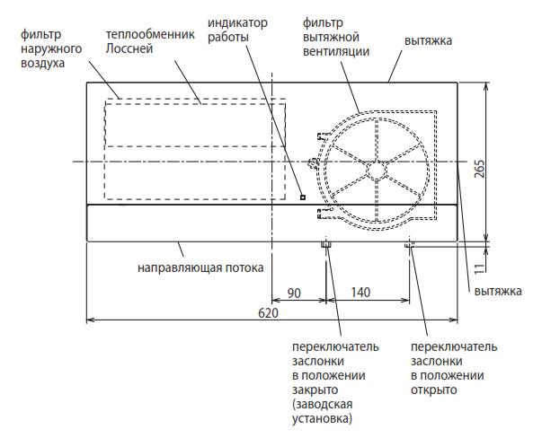В установке предусмотрена полная блокировка приточного воздуха. В случае необходимости можно полностью перекрыть воздух, благодаря встроенному воздушному клапану, достаточно передвинуть ручку и приток воздуха с улицы будет полностью заблокирован.