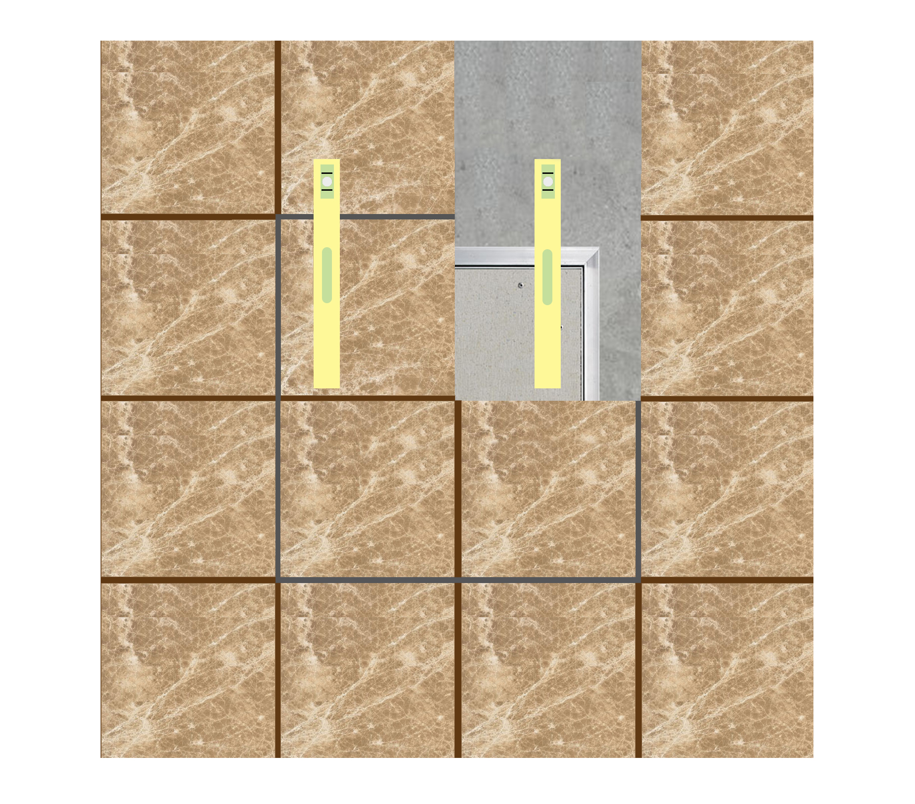 - Прорисовать раскладку плитки на той стене куда устанавливается люк невидимка, чтобы не было узких подрезов плитки по краям стены;