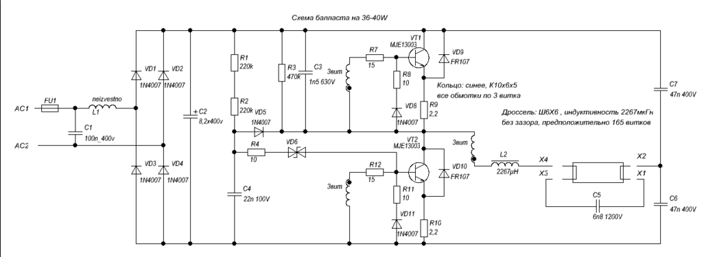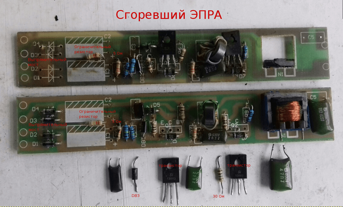 Сейчас мы рассмотрим основные неисправности, которые можно устранить без особых вложений. Начнем с электронного балласта, ведь в его схеме достаточно много элементов, которые могут выйти из строя и к тому же трубчатые люминесцентные лампы с ЭПРА на сегодняшний день встречаются более часто.