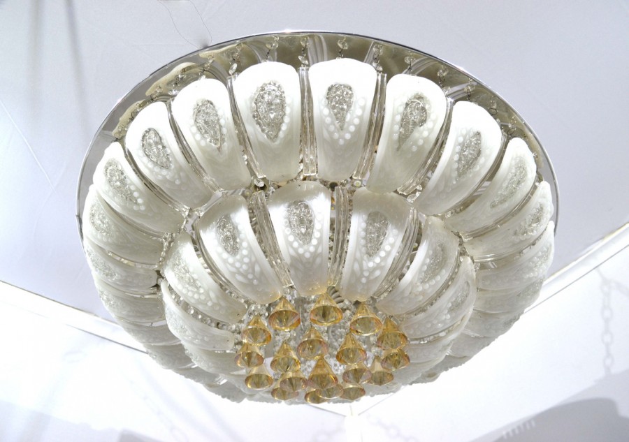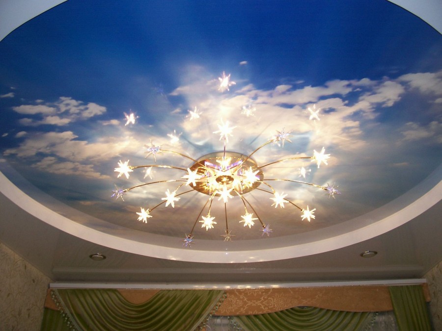 При выборе потолочной люстры стоит учесть конструкцию потолков. Натяжные потолки нельзя нагревать. Поэтому если в люстре установлены лампы галогенные или с нитью накала, то они должны быть направлены вниз. К светодиодным лампам это не относится, так как при работе они почти не выделяют тепла.