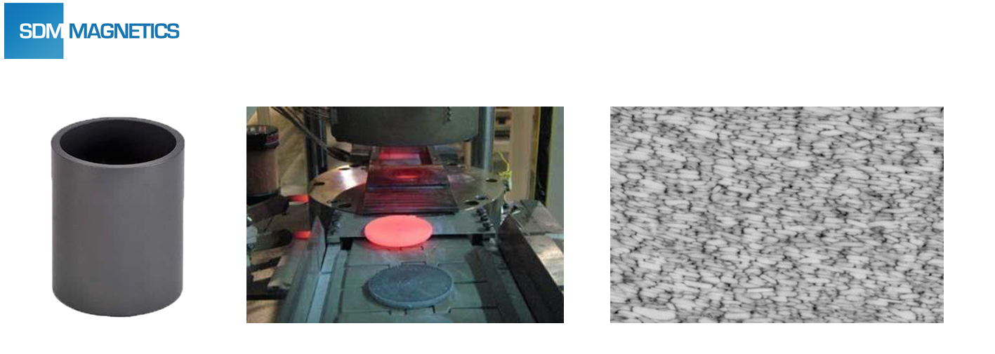 Магнитом с горячим прессованием является изотропный магнит полной плотности и анизотропный магнит полной плотности для горячего деформированного магнита. Технология горячего деформирования уже стала практическим методом изготовления радиально-ориентированного кольцевого магнита.