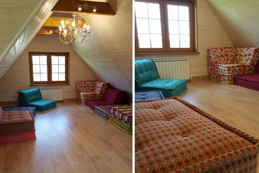 На мансарде свободно можно разместить детскую комнату со спальным местом, игровой зоной и местом для обучения