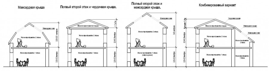Чисто по внешним показателям преобладающее количество мансардных конструкций можно разделить на: