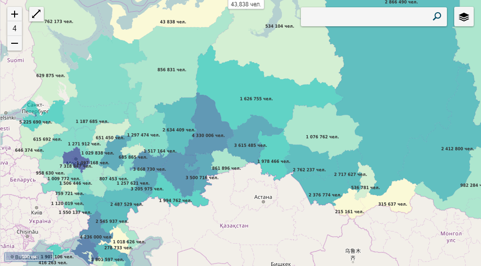 - настроить подписи к объектам на тематической карте (текст). Настройка позволяет выбрать колонку, значения которой будут отображаться в подписи к объекту, а также стиль этой подписи (шрифт, размер, контур);
