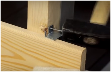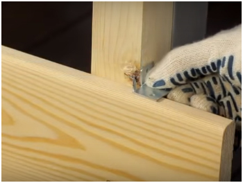 Верхняя планка загоняется в шип крепежного изделия. Для этого используется киянка и деревянный брусок. Удары надо проводить ближе к местам расположения реек каркаса.