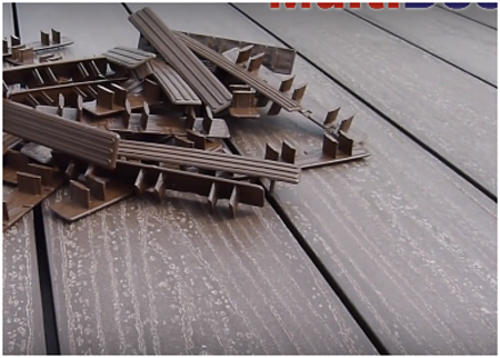 Посмотрите видео, как производится укладка деревянной террасной доски с помощью специальных крепежных элементов.