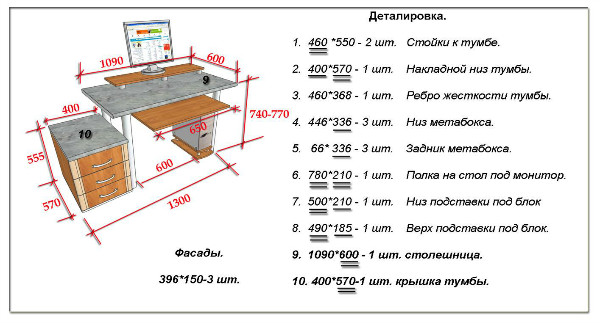 Если кто то захочет сделать себе компьютерный стол, можете воспользоваться данным раскроем:
