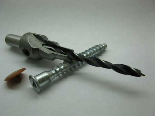 в) Сверло под конфирмат — предназначен для засверливания отверстий под конфирмат. С помощью данного сверла получаем отверстие для тела конфирмата D 5 мм, а так же благодаря ступеньке делает увеличенное отверстие 7 мм под шейку конфирмата (чтобы избежать разрыва ЛДСП), а так же зенкует отверстие под шляпку конфирмата (чтобы она полностью “утапливалась” в ЛДСП). Это фото из инета, я использую сверло немного другой формы, но принцип тот же.