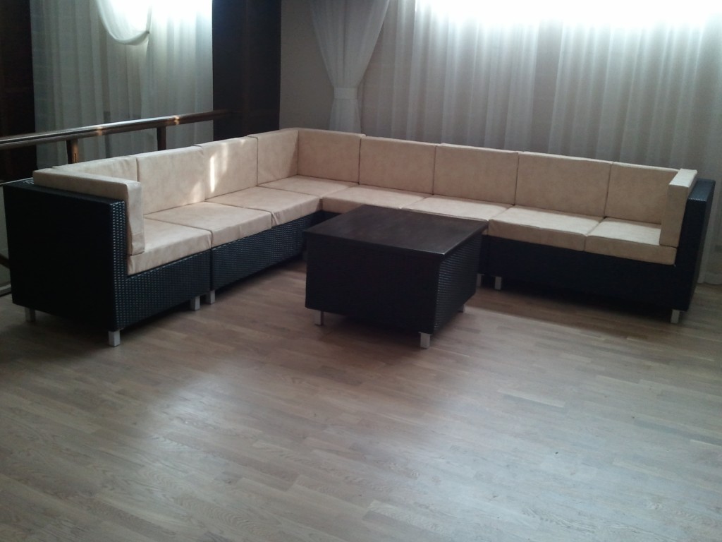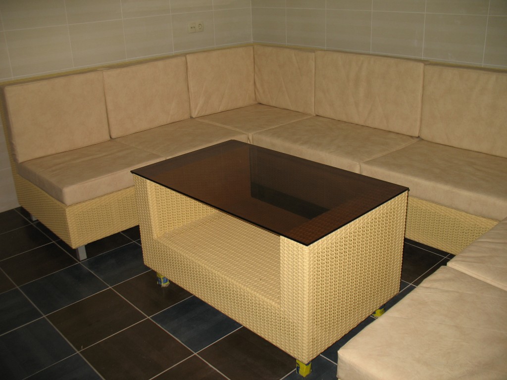 - не страшно усесться на диванчике людям с большим весом — запасы прочности плетёнки высоки;
