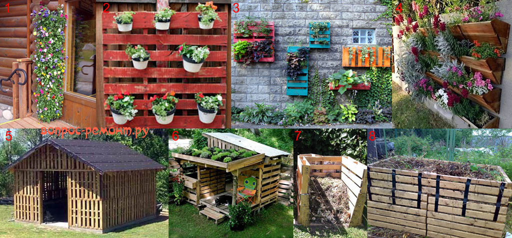 Нет, не только. Из паллет можно просто, быстро, недорого, без сложного инструмента и опыта сделать своими руками еще множество полезных вещей, особенно для дачи или дома с приусадебным участком, см. рис ниже:
