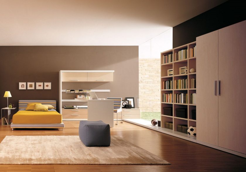 Что касается шкафов и стеллажей, то их наличие в данном стиле вполне приемлемо.