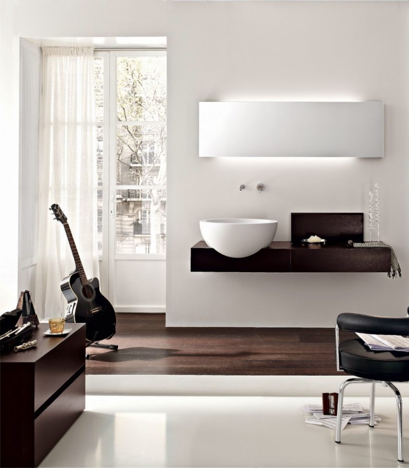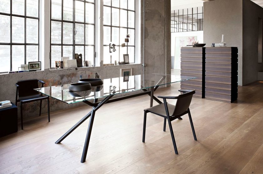 Не стоит выбирать стол из материалов бюджетного сегмента – ДВП и ДСП. Даже самое качественное изделие не сравнится по внешнему виду с натуральной древесиной, а такая замена полностью исказит смысл простого и роскошного минимализма.
