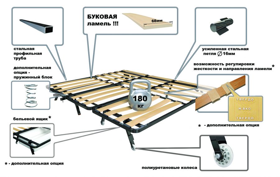 Необходимые для изготовления дивана аккордеон своими руками чертежи и схемы можно найти в интернете, подставить нужные размеры с учетом свободного места в комнате, желаемых длины и ширины спального места. Но для начала следует определиться с конструкцией. Мягкая часть может опираться на изготовленный из трубы круглого или прямоугольного сечения металлокаркас с ламелями или на столярный каркас из бруса и ДВП. Чтоб самостоятельно изготовить металлокаркас, понадобятся металлические трубы, качественные ламели, латодержатели для крепления деревянных ламелей к каркасу, а другой крепеж, трубогиб, сварка