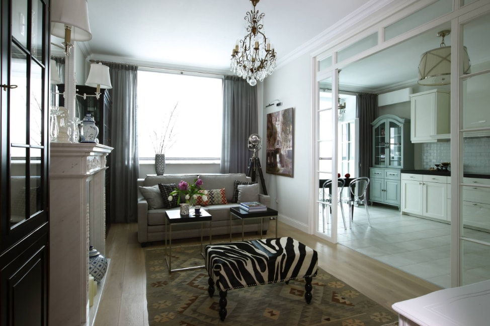 - 1Роскошная современность с элементами нео-ар-деко, характеризующаяся винтажной мебелью, отсутствием простоты и лаконичности в обстановке.