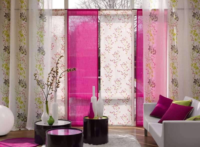 Что касается принта, то очень интересно смотрятся цветочные мотивы или абстрактные рисунки. А шторы с вертикальными полосами или воланами идеально подойдут для небольших комнат с низкими потолками. Поскольку такие рисунки визуально делают помещение выше.