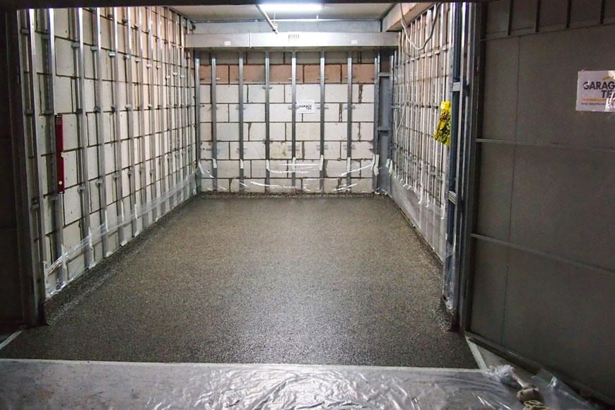 Полимеры, нанесенные на пол в гараже, образуют сплошной водонепроницаемый слой