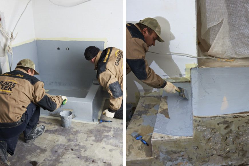 Шаг 2 — ремонт и протяжка. Важнейший этап для получения идеального результата. Перед началом работы проводится грунтовка, которая решает проблему микротрещин в основании. Если трещины большие, их замазывают цементным раствором. После этого проводится непосредственно протяжка.
