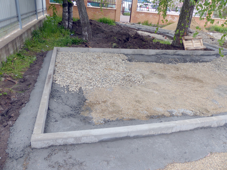 Его также трамбуют, а затем уже на эту основу устанавливают бордюрные камни. Такая технология подготовки основания является самой простой и недорогой. Однако применять ее рекомендуется только для тротуарных дорожек и ограждения садовых насаждений.