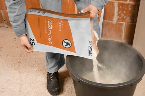 Самым известным вариантом является клей на основе гипса. Иногда основу составляет цемент.