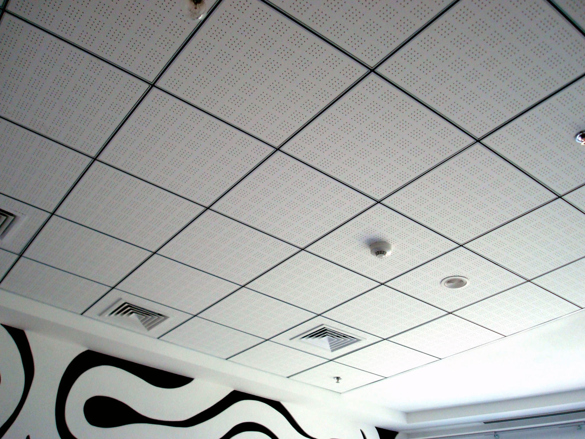 - Ряд систем потолков Армстронг обладает повышенными звукоизоляционными характеристиками. Также выпускаются плиты для потолков из негорючего материала, что дает возможность существенно повысить пожаробезопасность помещения.