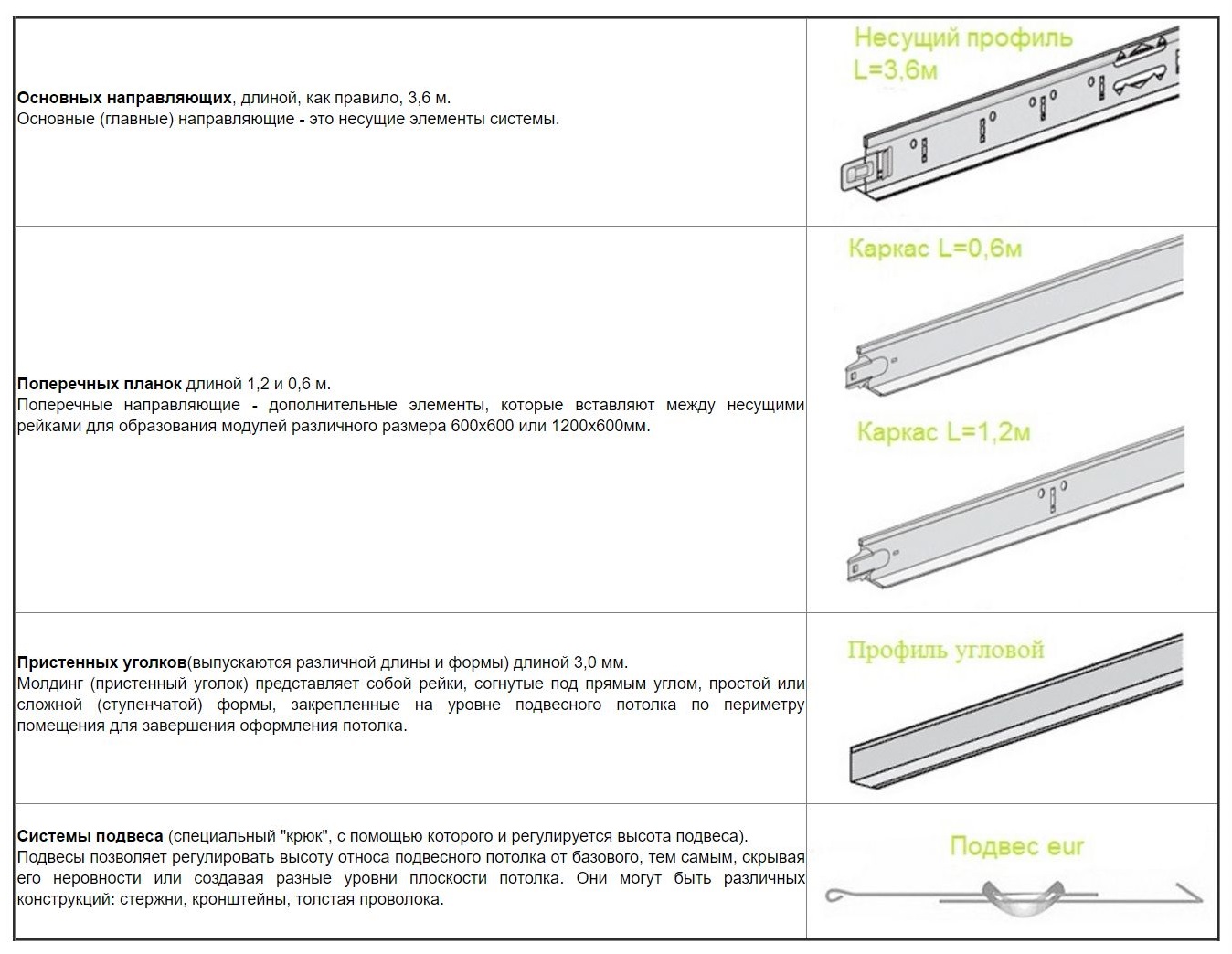 - Несущий Т-образный профиль, длина – 3,7 м. Их располагают параллельно короткой стене помещения, при необходимости наращивают с помощью стандартных креплений или отпиливают излишки.