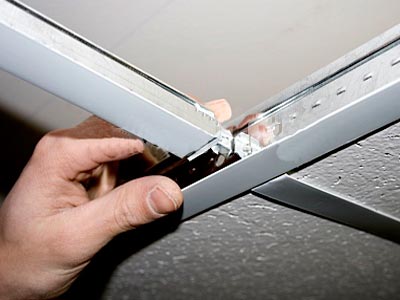 Крепят плиты на каркас, в основе которого металлические и металлопластиковые профили со специальными отверстиями для подвески. Соединяют профили по длине с помощью специальных отгибаемых усиков или пружинных замков.