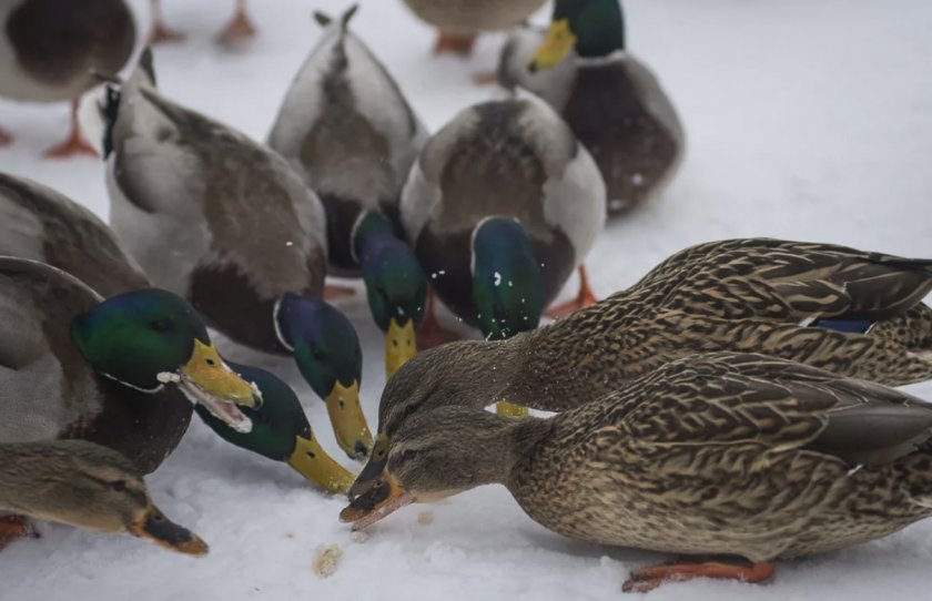 А суровой зимой, особенно при отсутствии полыньи, без помощи человека выжить уткам будет непросто.