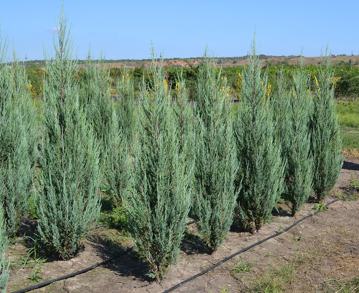 Также преимуществом «Blue Arrow», при сравнении его с другим известным сортом «Skyrocket», является более глубокий и насыщенный цвет растения.