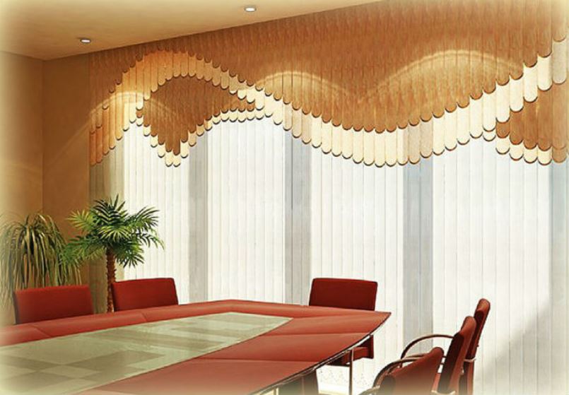 Красиво смотрятся вертикальные жалюзи на больших оконных проемах и вдоль всей стены. В домашней обстановке дополняются прозрачной тканью, что дает эффект сочетания гардин с портьерами. А еще они зрительно увеличивают объем помещения и высоту потолков. Следует помнить: чем шире полотно, тем детальнее видно рисунок.
