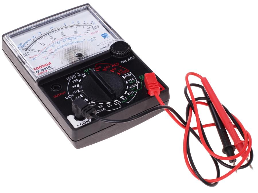 Существуют также приборы старого образца – аналоговые или как их еще принято называть – стрелочные мультиметры. Модель со стрелкой уже практически не используется, т.к. такая шкала имеет более высокую погрешность и к тому же замерять напряжение, сопротивление и силу тока по стрелочному табло менее удобно.