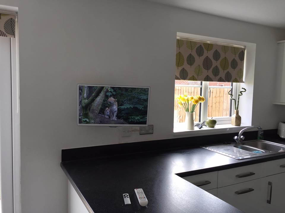 При установке телевизора в кухне не забывайте, что нельзя его располагать близко к плите, варочной панели, газовой колонке, батареям отопления и раковине. Это требования техники безопасности и ими не стоит пренебрегать!