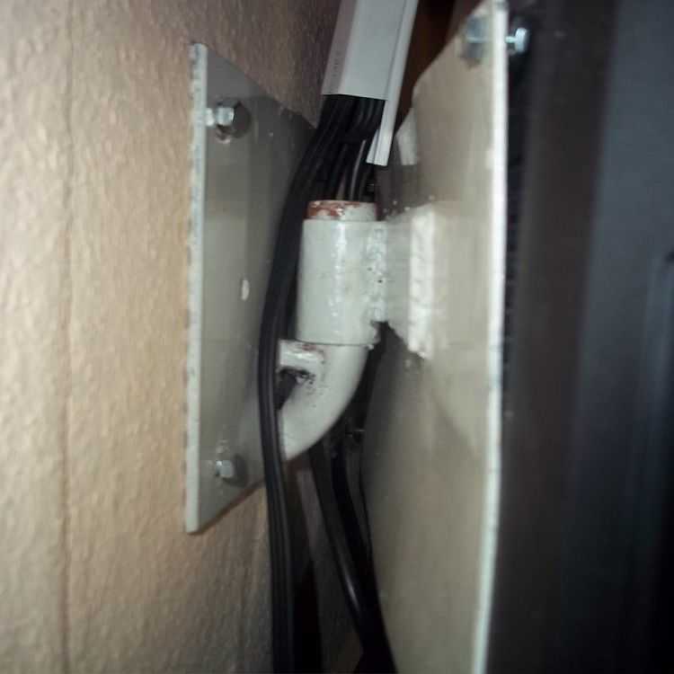 Проверить стену на предмет наличия скрытой электропроводки с помощью сигнализатора или другого прибора, чтобы не наткнуться на электрическую жилу во время работ по сверлению отверстий.