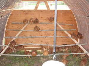 Следите, чтобы на каждую птицу приходилось не менее 18 см на жердочке, если курица яичной породы, и не менее 25 см для птиц мясо-яичной породы.