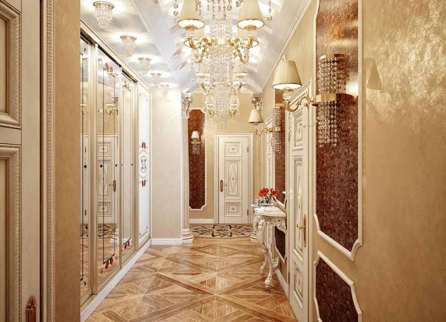 Очень часто прихожие и коридоры в квартирах представляют собой длинную и узкую комнату. Выбирать осветительные приборы для подобного пространства следует так, чтобы зрительно его расширить.