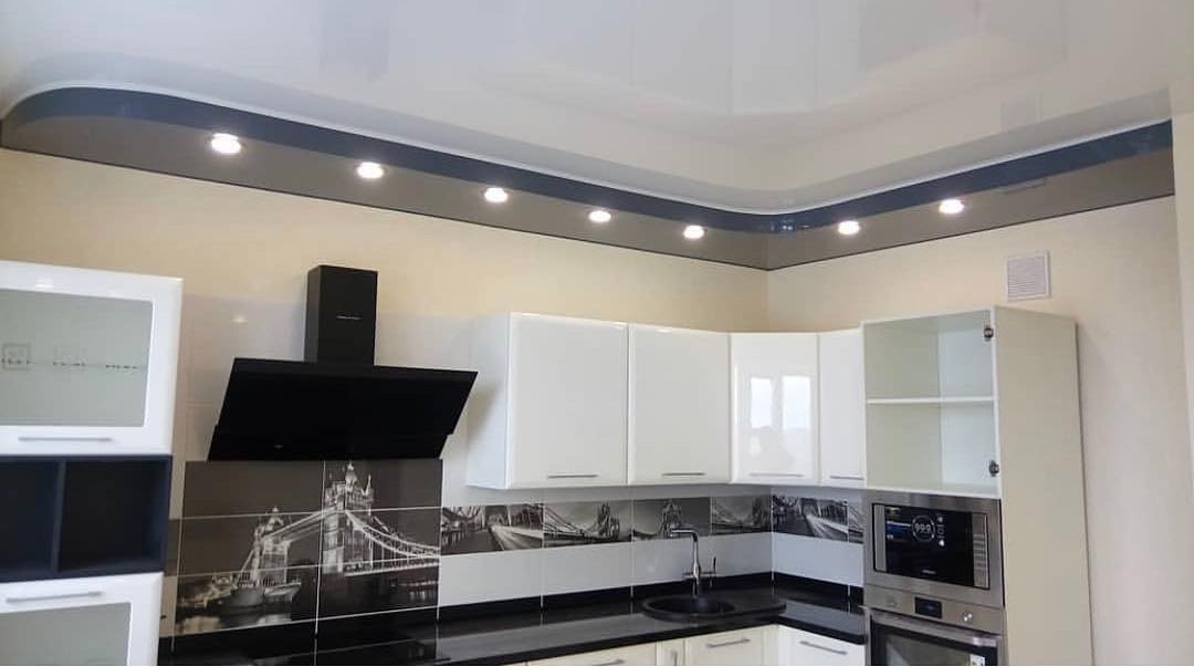 Двухуровневые натяжные потолки в кухне