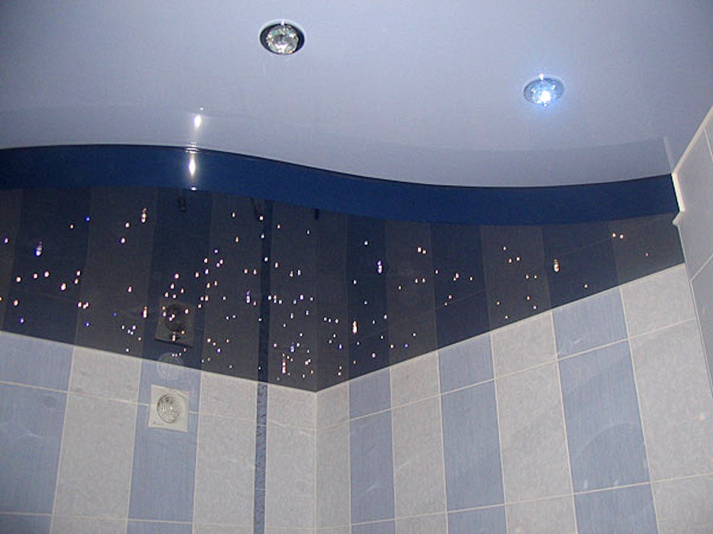 - обустройство потолков с натяжной конструкцией возможно в любых комнатах, включая ванную, кухню, гостиную, поскольку материалу не страшны жировые испарения, грязь, пыль, даже влага;