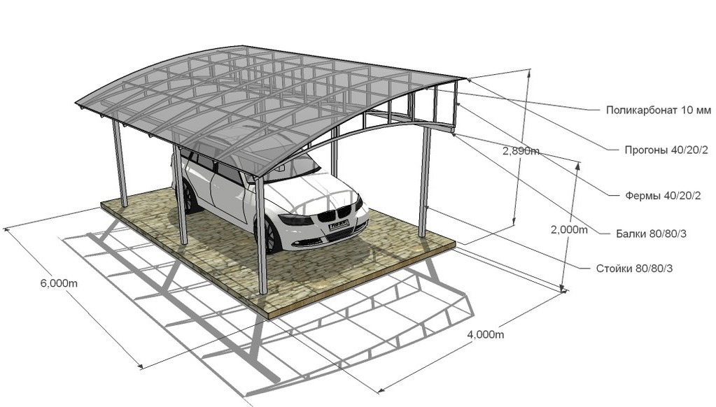 Навесы для машины из поликарбоната, фото проект стоянки на 2 автомобиля